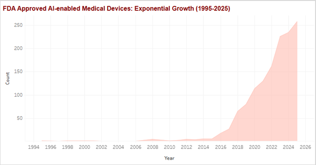 Figure 2: FDA-Approved AI-Enabled Medical Devices Trend – Exponential growth acceleration post-2018.