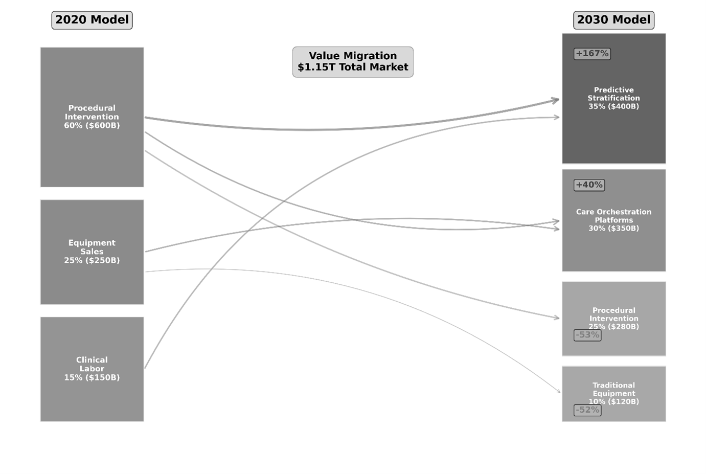 Figure 3: Healthcare Value Migration (2020-2030) – Margin capture shifting toward predictive stratification.