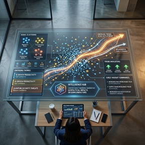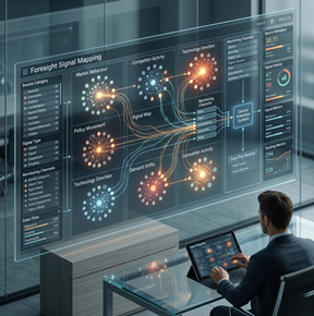 We begin by identifying where meaningful early signals are most likely to emerge. This includes tracking market behaviour, competitor activity, policy movement, technology direction, and demand shifts. The process establishes a focused signal environment for ongoing detection.
