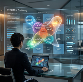 We study how competitors position their offerings and which needs they prioritise. This includes analysing positioning patterns, focus areas, and market participation. The analysis reveals where attention is concentrated.