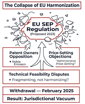 - The European Union withdrew its SEP regulatory policy in October 2025 after failing to reach consensus, exposing divisions over a 15‑billion‑dollar 5G licensing market.