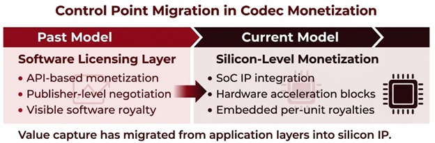 Silicon‑level IP control reshapes codec and chipset monetization economics.