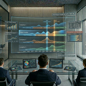 We apply structured competitive intelligence to evaluate how portfolios perform relative to competitor patent activity.