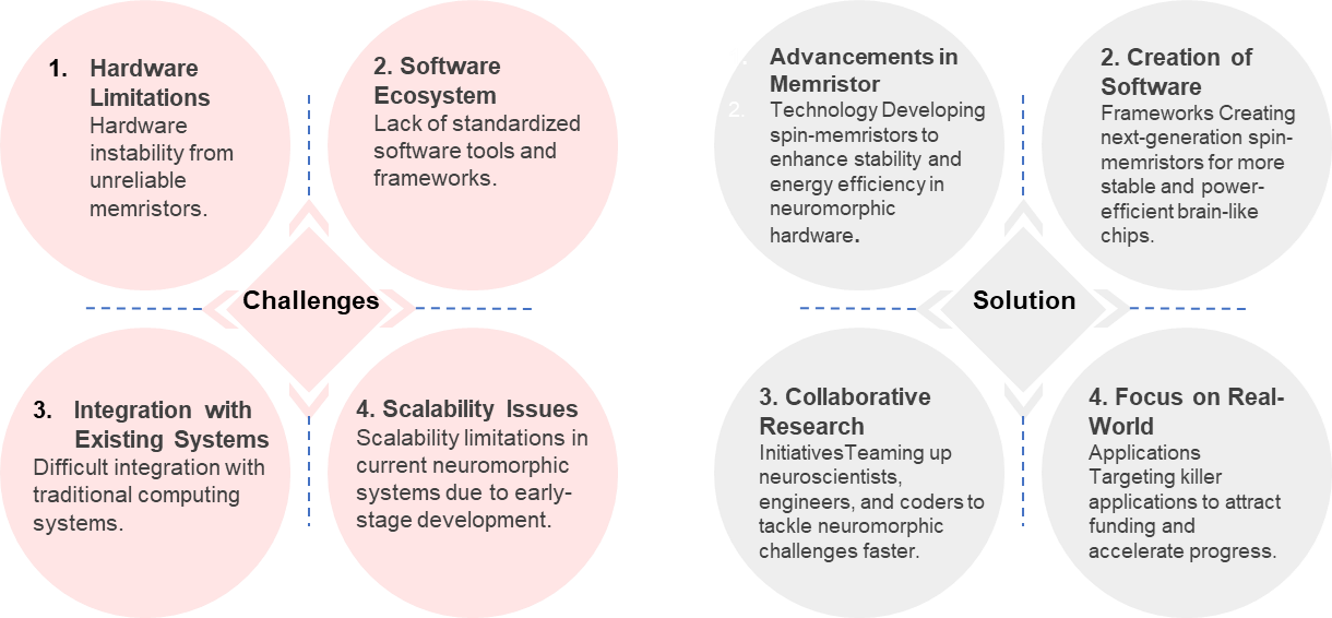 - Solution – Advancements in Memristor Technology (Developing spin-memristors to enhance stability and energy efficiency in neuromorphic hardware.)