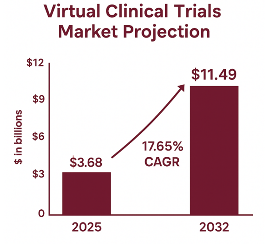 - Rapid Growth of the Market: Virtual clinical trials are expected to achieve $11.49B by 2032 as a result of access, convenience, and technology.